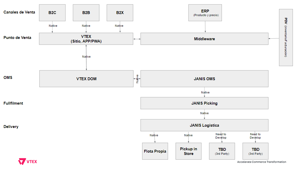 VTEX Commerce Cloud junto con JANIS, un sistema de picking integrado de forma nativa, proporciona a las tiendas de alimentos un conjunto de funcionalidades de comercio como sistema de gestión de pedidos, sistema de gestión de almacenes, picking, servicio de atención al cliente, packing y logística.