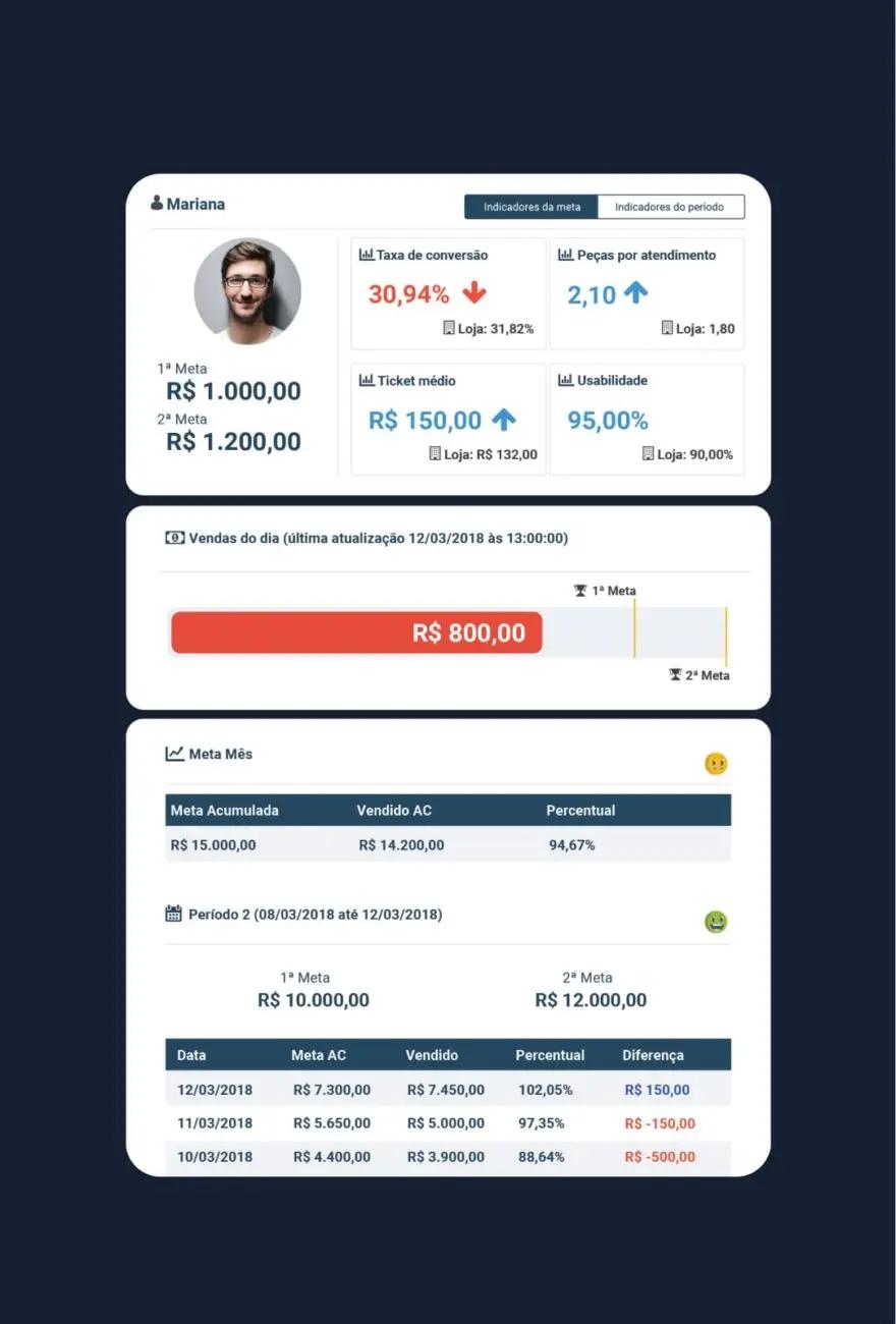 - Facilidade na tomada de decisão- Acesse os resultados dos principais indicadores do varejo como P.A, Ticket Médio, Taxa de Conversão.